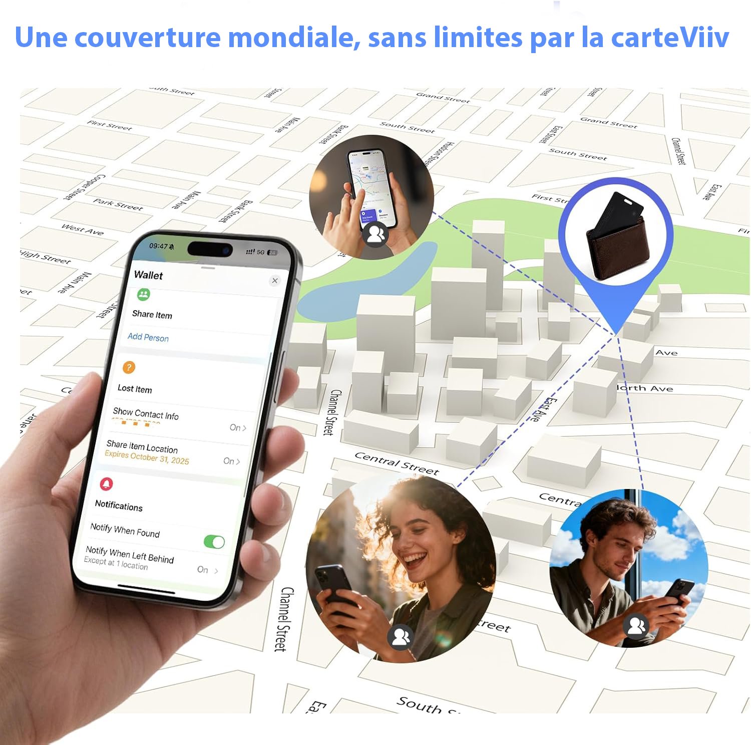 Utilisez les milliards d'appareils du réseau pour localiser votre carte partout dans le monde de manière sécurisée.